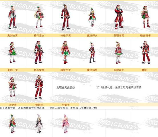 这次的时装有两种,礼包卖的这个是2014年出过的款式,补充了新职业。抽奖里获得的是2018款圣诞欢歌套。