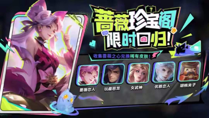 另外,五五开黑节除了会赠送给玩家免费的头像框之外,还会有限时的活动上架,比如每一年都会开启的蔷薇珍宝阁活动,玩家集齐蔷薇之心,用150蔷薇之心就可以免费兑换这个珍宝阁里面的皮肤。