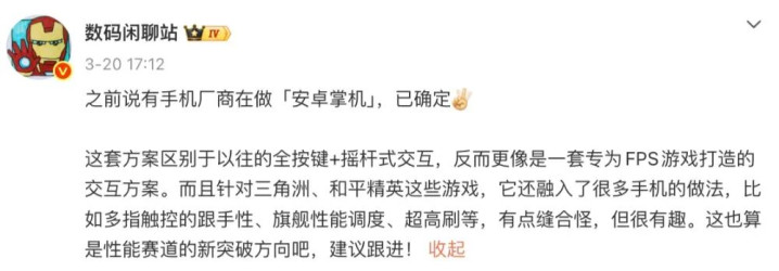 在此之前的爆料提到过,这套方案区别于以往的全按键+摇杆式交互,反而更像是一套专为FPS游戏打造的交互方案。而且针对三角洲、和平精英这些游戏,它还融入了很多手机的做法,比如多指触控的跟手性、旗舰性能调度、超高刷等,有点缝合怪,但很有趣。
