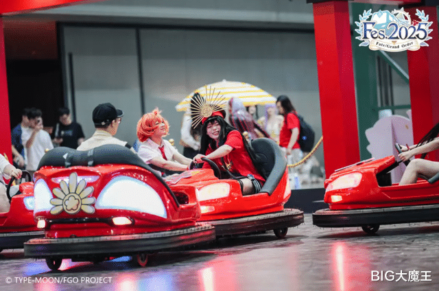 此外,“迦勒底探宝小队”项目也吸引了大量玩家排队体验。在这个私密互动空间中,大伙能与喜爱的从者进行1对1的Live2D互动,这个项目还是相当有趣的。而“英灵召唤照相馆”则让不少玩家圆了“与从者同框”的心愿,可以开心的带着合影大头贴回家。更有趣的是“唠唠叨叨大奖赛”,碰碰车这种游戏可能很多小伙伴长大后就再没机会玩过,因此现场吸引了大量玩家踊跃参与。