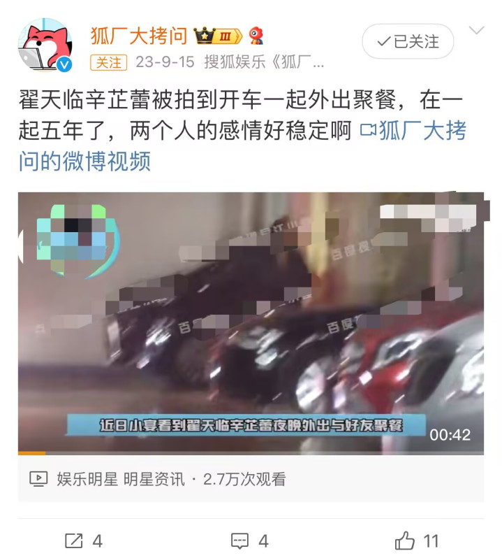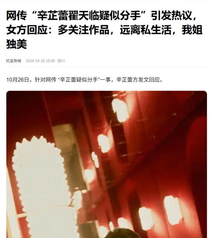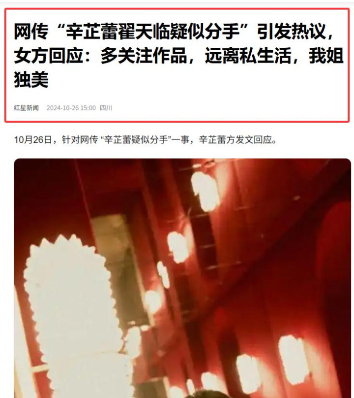 然而,去年十月前后,网络上却流传起“辛芷蕾与翟天临疑似分手”。