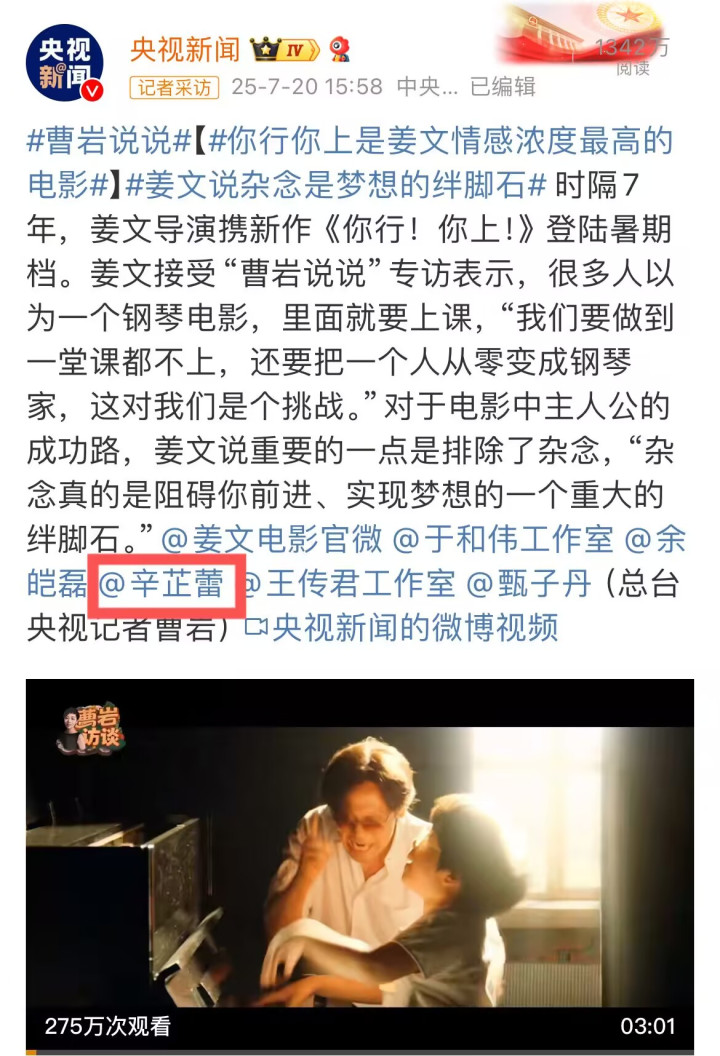 直到央视新闻发文,这再次将辛芷蕾推向了舆论的顶峰。