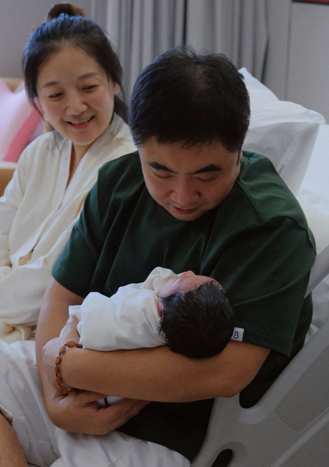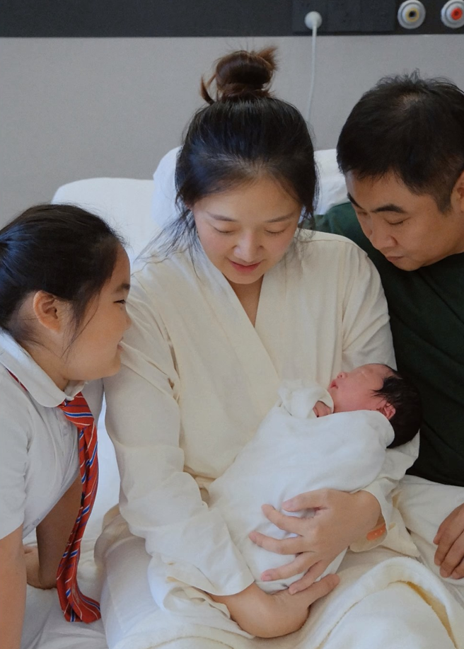 乔杉妻子官宣三胎得子, 两女儿到产房迎接, 父女四人共用一张脸