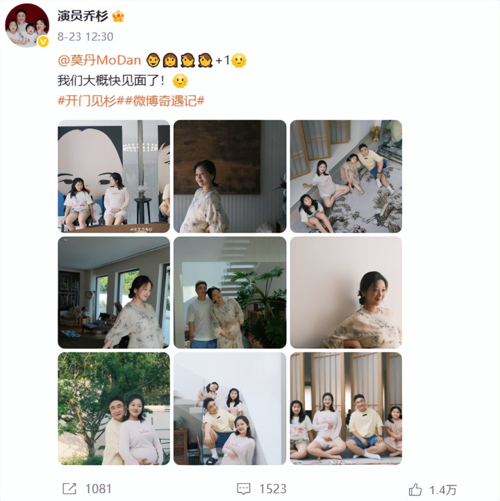 9月22日,乔杉妻子莫丹发文官宣三胎得子,乔杉和两个女儿到产房迎接儿子,一家五口温馨美满。莫丹分享了多张照片,曝光了儿子的长相,喜感十足,和乔杉如同饼印。