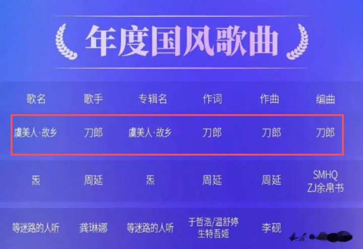 但到这里还没完,在今年的第二届数字音乐年度的荣誉榜单上再次出现了刀郎的名字。