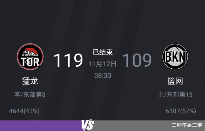 多伦多猛龙 119:109布鲁克林篮网