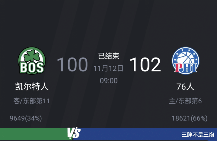 波士顿凯尔特人100:102 费城76人
