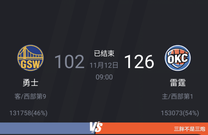 金州勇士102:126 俄克拉荷马雷霆